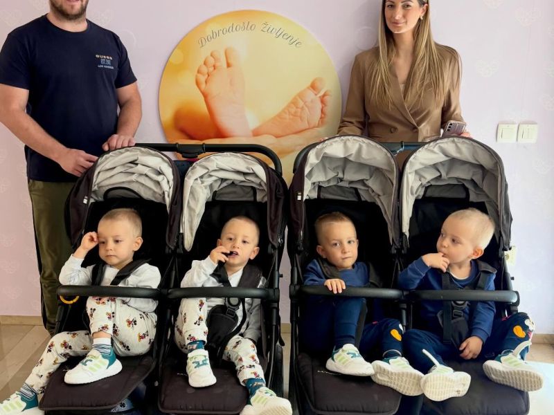 V ljubljanski porodnišnici so obiskali četverčki, ki so se rodili leta 2024. Fantje, Matej, Luka, Marko in Jovan, lepo napredujejo in dosegajo razvojne mejnike. Družina Petrović iz Celja ima poleg četverčkov še starejšega sina Konstantina.